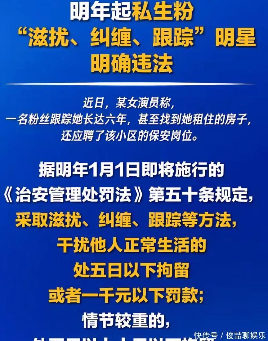 在2025年12月时,在《光明日报》上,有则发布消息:自2026年起,私生粉丝纠缠明星,将被明确列为违法行为,情节严重者将面临刑事处罚。这一新规,标志着对文娱领域乱象的整治,也是从行业自律,直接上升到国家监管的层面了。